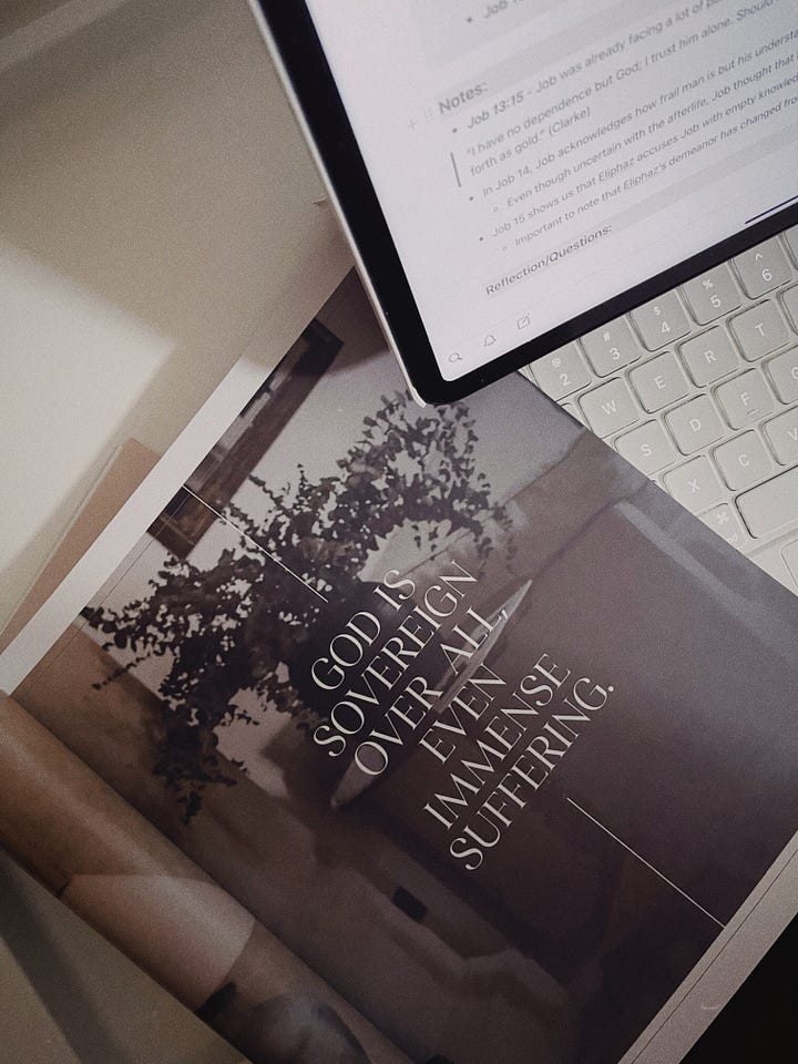 A nice reminder from the story of Job - If you’re familiar with Job’s story in the Bible, then you’ll remember he suffered quite a lot during his whole life. One of my key takeaways was this nice page in the Eden to Eternity study guide/book. It was just a nice reminder for me to trust God and His sovereignty should I ever go through another episode of immense suffering in my life, as I had before.