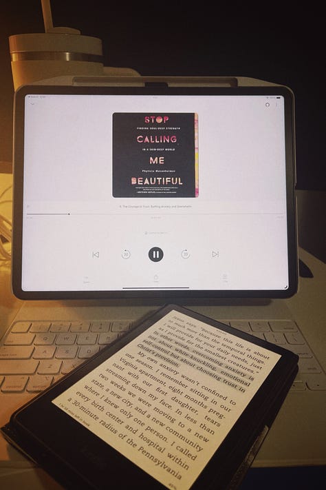 Reading: Kindle: Stop Calling Me Beautiful, Phylicia Masonheimer; Audiobook: Spare, Prince Harry
